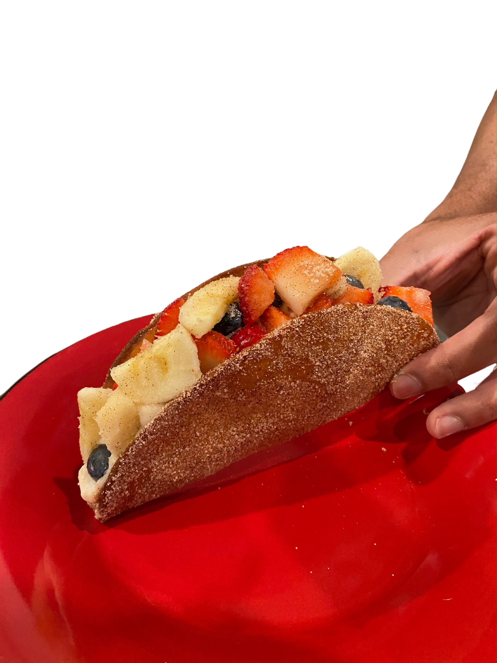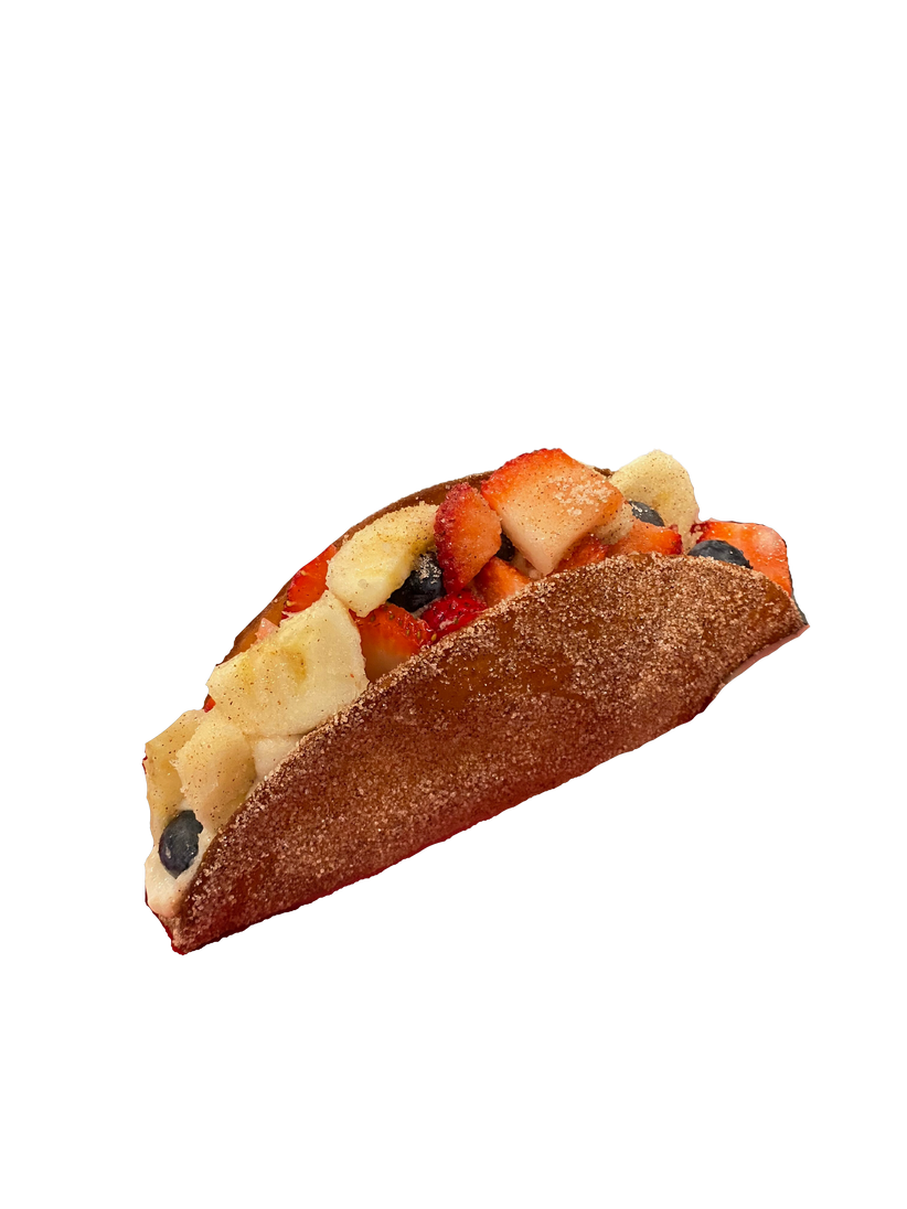 Our fruity churro taco with luscious vanilla cheesecake filling